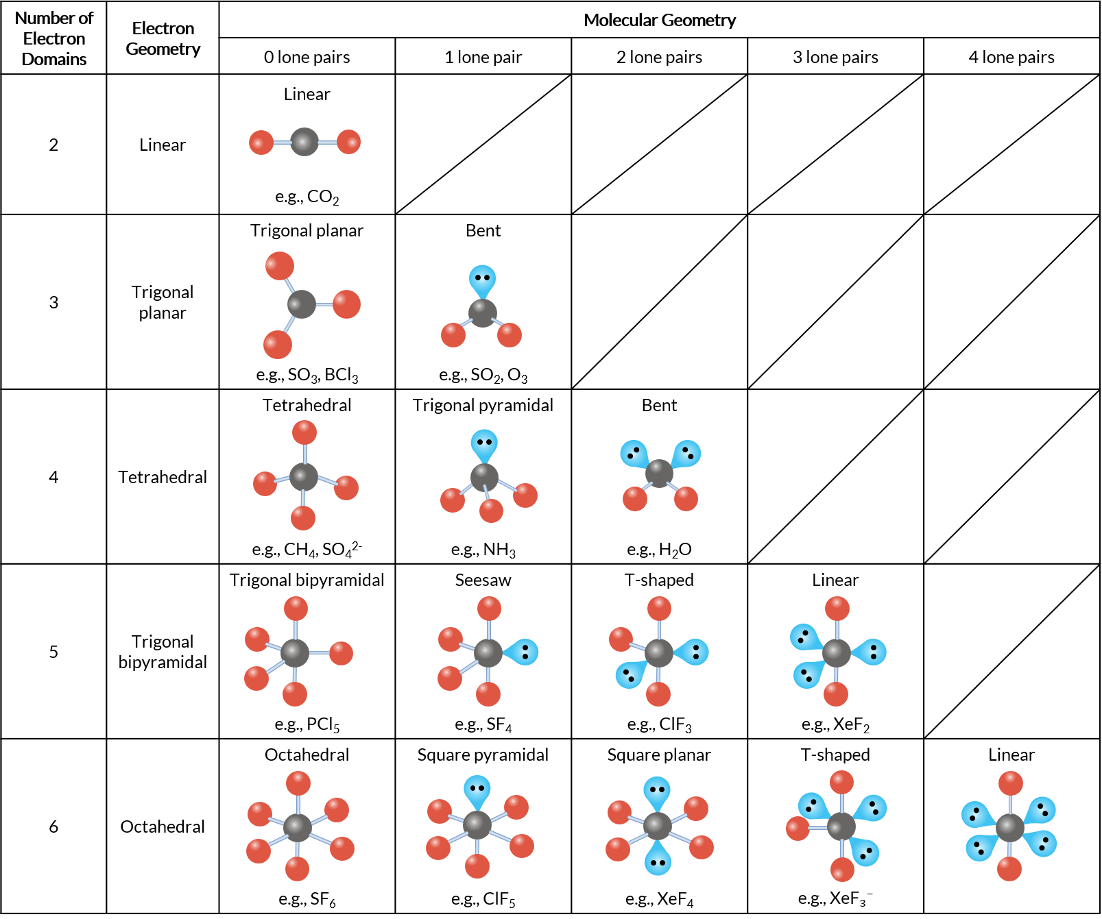 - Determine Electron Pair Geometry: Use the VSEPR table to determine the electron pair geometry based on the number of electron pairs.